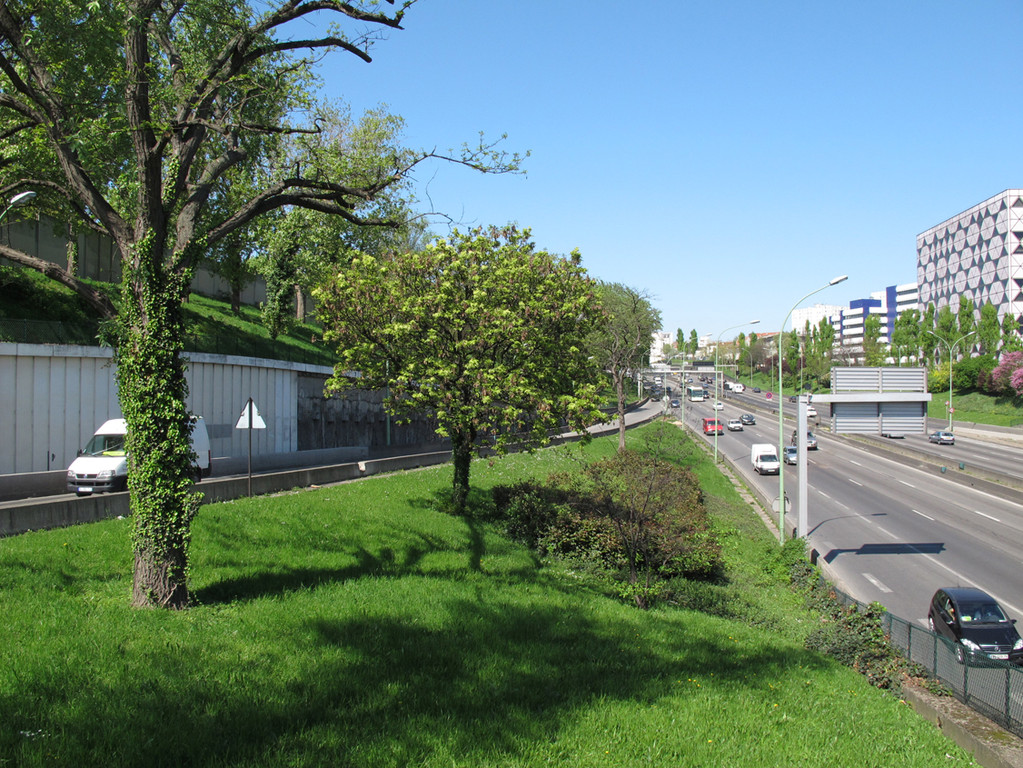 La promenade partant de la Porte de Bagnolet vous fera découvrir un projet urbain étonnant : l’échangeur de l’autoroute A3 a été conçu dès le départ comme un lieu où il fallait s’arrêter et qui ne devait pas être appréhendé qu’au travers de l’automobile. Au lieu d’être traversé à la hâte, il a été pensé comme une véritable centralité devant amener les gens rentrant dans Paris à prendre leur temps. Paradoxalement, l’échangeur n’est plus un espace réservé à l’automobile, mais partagé avec le piéton.